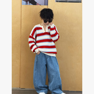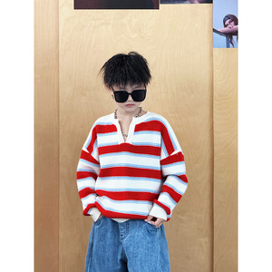 男童韩版毛衣2025春秋新款中大童设计感时髦条纹复古舒适外穿上衣