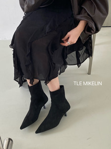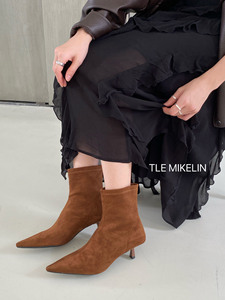 复古尖头细跟短靴女百搭绒面2025年秋冬季短筒瘦瘦靴气质