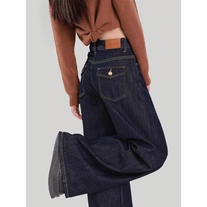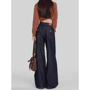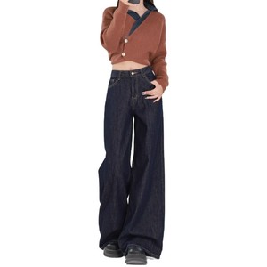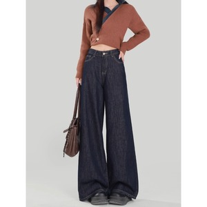 复古美式丹宁蓝高腰阔腿牛仔裤女2025秋季新款慵懒宽松直筒裤子潮