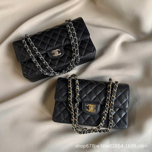 新款香家cf26鱼子酱包方胖子包菱格链条包真皮腋下包单肩手提包女
