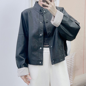 2025年秋季品牌专柜时尚韩版休闲百搭短款朋克风机车皮衣外套857