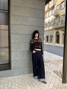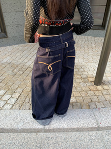 誉一新款2025秋季韩系设计感假腰带牛仔裤女刺绣阔腿长裤女hc1372