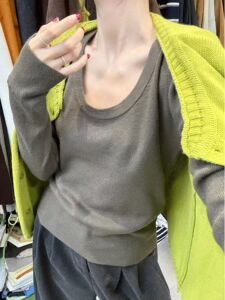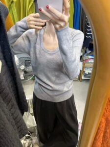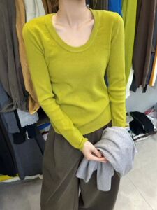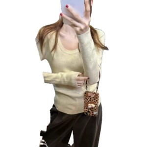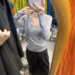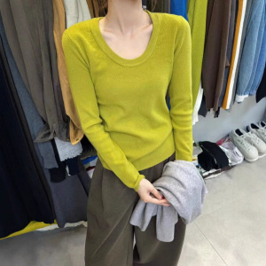 U领针织衫女内搭2025秋季新品修身显瘦露锁骨长袖上衣时尚打底衫