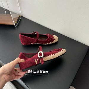 ALIGUIFEI复古晚晚风方头蝴蝶结内增高玛丽珍鞋法式气质百搭单鞋