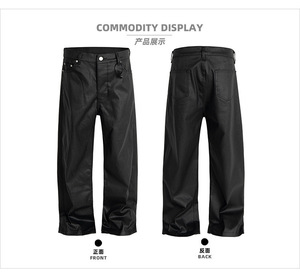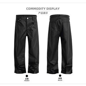 美式高街ro风格刷蜡涂层牛仔裤男小众潮牌宽松直筒蜡裤