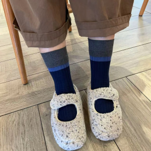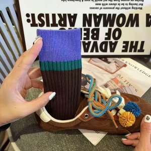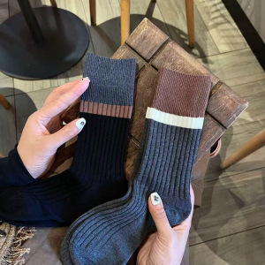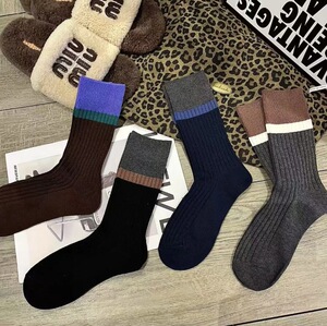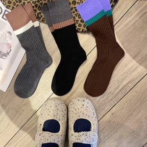复古撞色无骨条纹中筒堆堆袜秋冬季韩版东大门时尚网红爆款女长袜