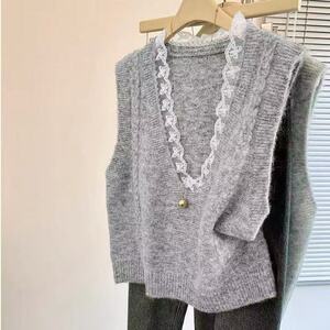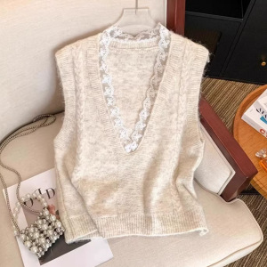 专柜撤回剪标设计感蕾丝拼接针织马甲女春夏新款小个子叠穿小背心