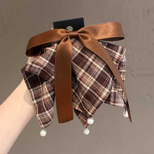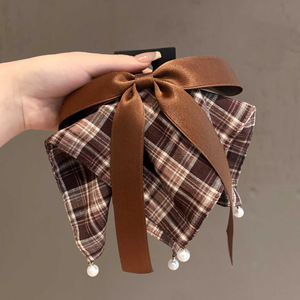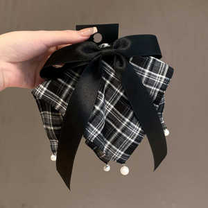 法式复古美拉德色系格纹方巾马尾夹少女心珍珠蝴蝶结盘发夹鲨鱼夹