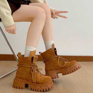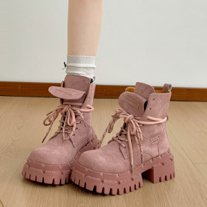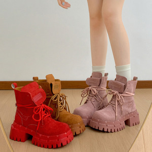 红色复古高级感英伦厚底马丁靴女款2025新款秋季配裙子显瘦短靴子