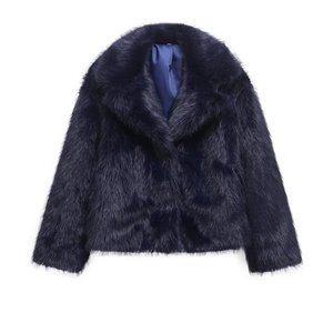 跨境外贸女装2025秋冬季欧美风翻领长袖人造皮毛毛呢外套女G80330