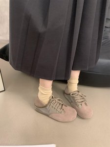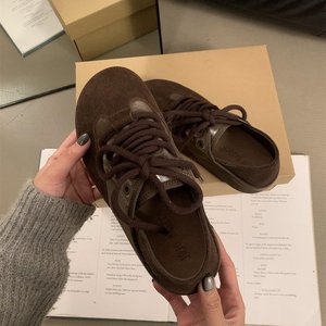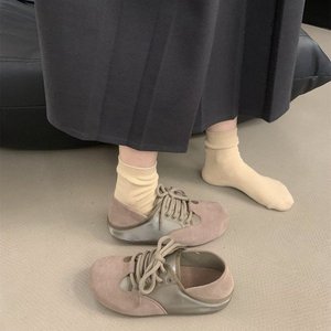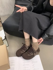牛皮版!复古森系丑萌勃肯鞋女秋冬绑带休闲软底乐福鞋子厚底单鞋