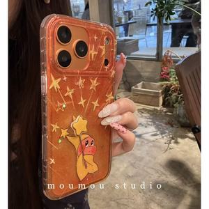 可爱细闪星星人立体旋转适用iPhone17promax苹果16手机壳15新款14