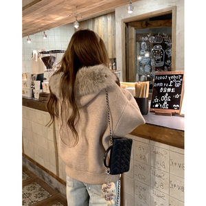 气质时髦休闲风大毛领毛衣 开衫外套女秋冬宽松显瘦软糯针织衫潮