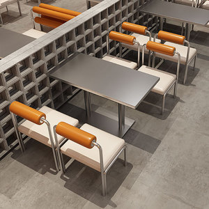 跨境出口韩式不锈钢卡座 简约奶茶店烧烤店饭店主题餐厅加厚桌椅
