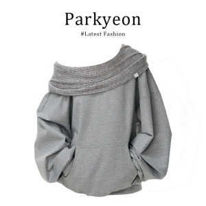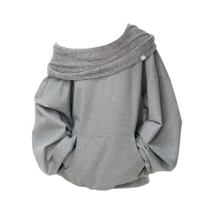 斜肩一字领宽松套头连帽卫衣露肩上衣女早秋新款宽松上衣