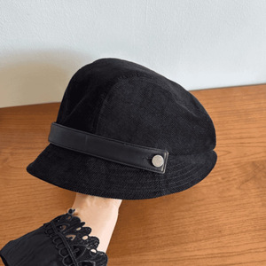 多种戴法渔夫帽女小礼帽黑色灯芯绒骑车可戴登山帽休闲百搭马术帽