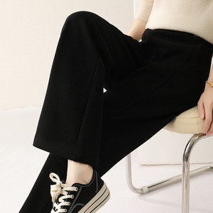 窄版梭织运动裤女宽松高腰垂感直筒阔腿裤小个子加厚休闲秋冬卫裤