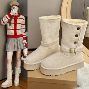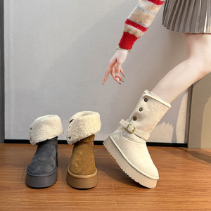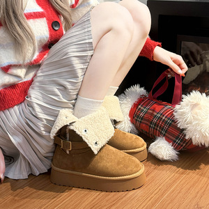 毛毛雪地靴女冬加绒加厚皮毛一体短靴厚底一脚蹬居家保暖面包棉鞋