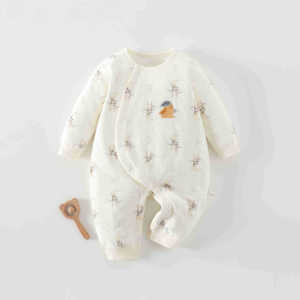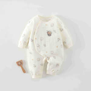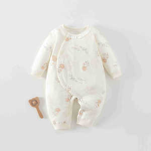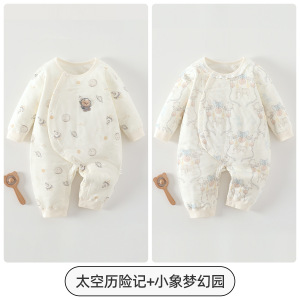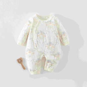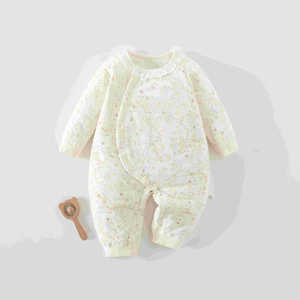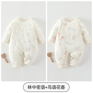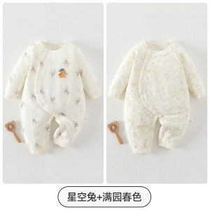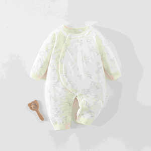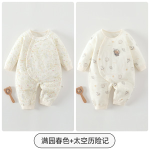 婧麒新生婴幼儿夹棉连体衣秋冬季小月龄宝宝衣服保暖冬外出哈衣服