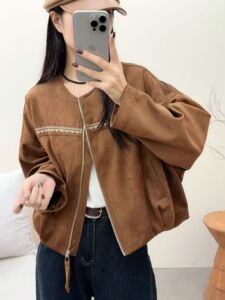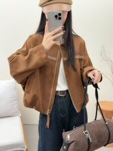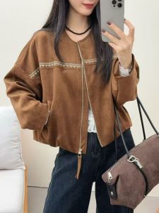 美式复古麂皮绒外套女秋季新款宽松小个子高级感短款夹克上衣潮