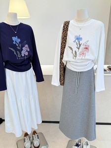 韩系时尚设计感印花宽松圆领长袖T恤女2025新款百搭休闲减龄上衣