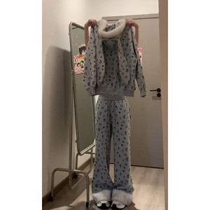 韩系Kitty毛绒兔耳朵连帽睡衣女秋冬季休闲卫衣可外穿家居服套装