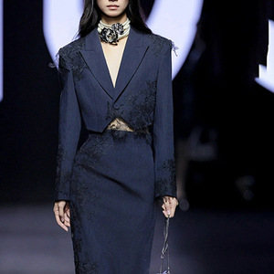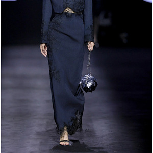 小众轻奢拼蕾丝条纹西服套装冬收腰单扣西装短外套显瘦高腰半身裙