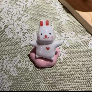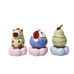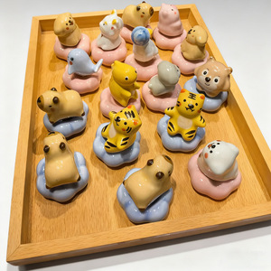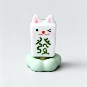 陶瓷小动物旋转摆件陶瓷兔子麻将发财猫转转玩具礼品工艺品摆件