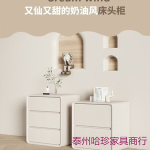 奶油风床头柜实木现代简约小型家用轻奢床边柜极简床头收纳柜