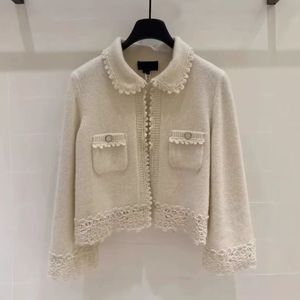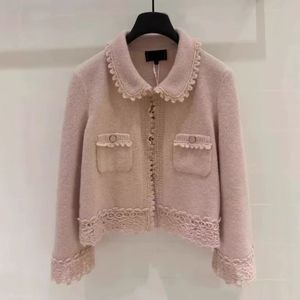 高定南油25早秋小香风双C水钻钩花针织波浪花边长袖开衫上衣女潮