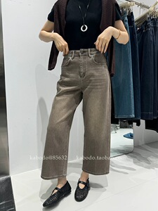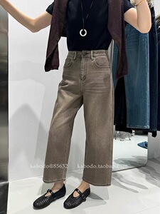 巴布85632牛仔裤女2025秋季新款阔腿裤Kabodo高腰咖色九分弯刀裤