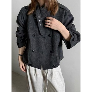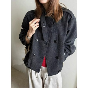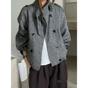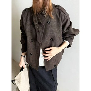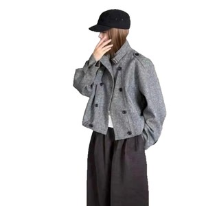 韩系毛呢外套女2025秋季新款高级感立领双排扣休闲宽松夹克上衣潮