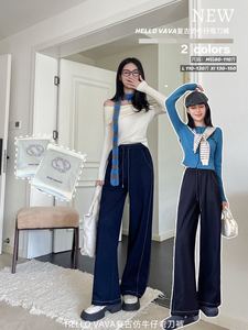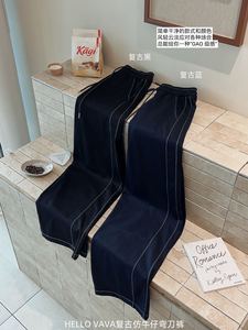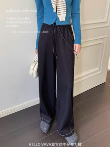 HELLO VAVA复古仿牛仔弯刀裤2025新款宽松阔腿抗皱慵懒休闲长裤
