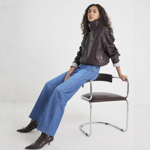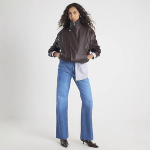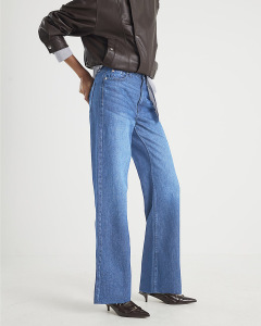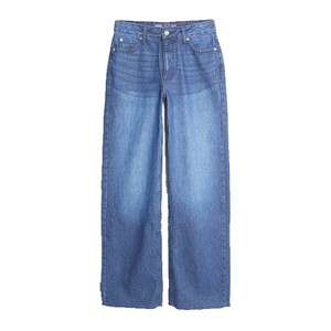 2025跨境欧美MO同款低腰复古直筒深蓝剪脚边牛仔裤女JEAN个性长裤