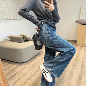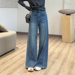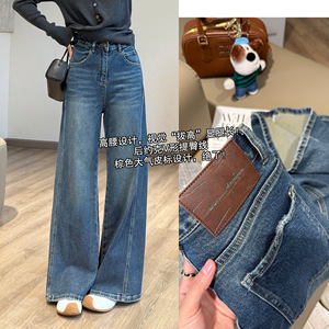 靓小靓 几何立裁削跨牛仔裤 复古蓝气质高腰阔腿裤秋冬不拖地长裤