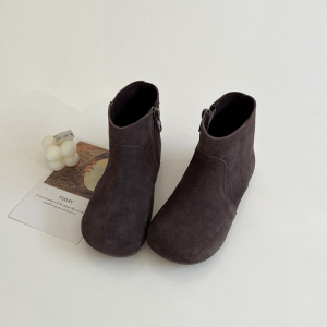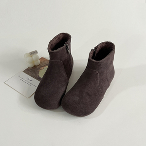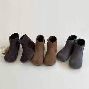 康蒂猫 韩版儿童复古侧拉链短靴秋冬新款男女童纯色百搭休闲皮靴