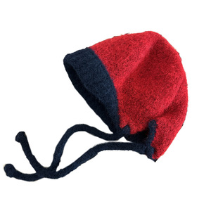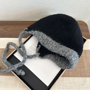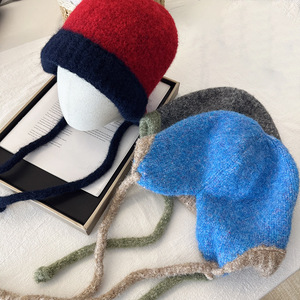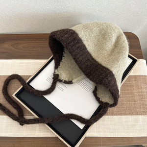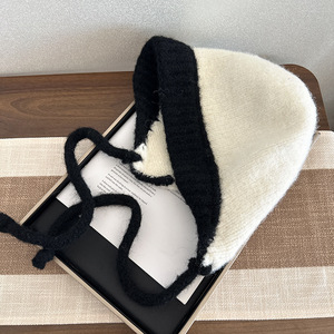 韩国东大门网红帽羊毛混纺拼色包头帽地主帽可爱甜美护耳帽子冬季