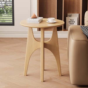 简约现代全实木小件茶几橡胶木圆形小边几设计师客厅小茶台置物架