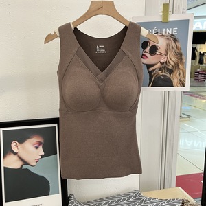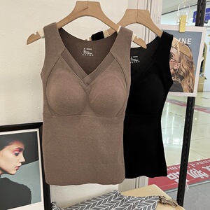 秋冬新款石墨烯保暖背心女固定杯加绒加厚打底马甲无痕保暖内衣女