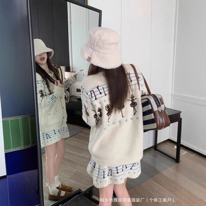 圣诞毛衣套装女优雅复古2025秋季新款时尚翻领减龄毛衣短裙两件套