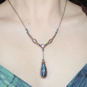 时尚新中式手工编织蓝色水滴吊坠项链小众高级感显白可调节颈链