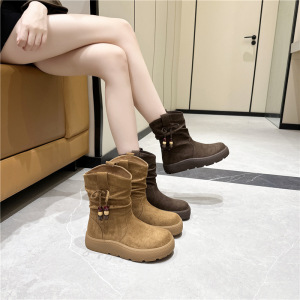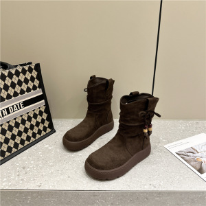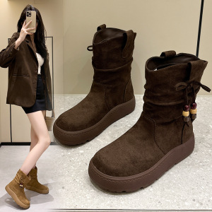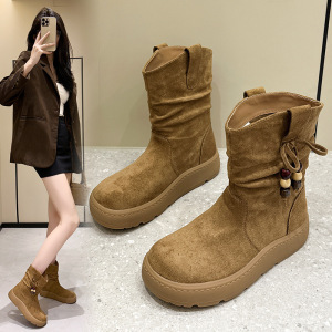 大码女靴41—43厚底复古加绒马丁靴女2025秋冬款百搭休闲时尚单靴