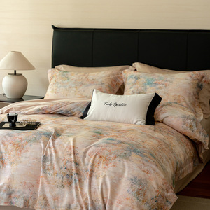 高端花卉秋冬100s天丝棉轻磨毛四件套轻奢高级感柔软丝滑床单被套