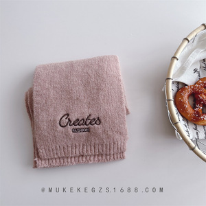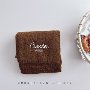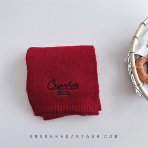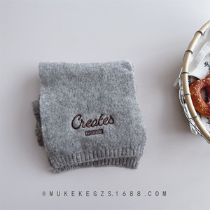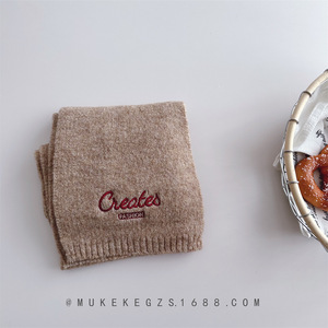 设计师款儿童羊毛围巾 秋冬刺绣潮范男女童保暖加厚围脖针织围巾