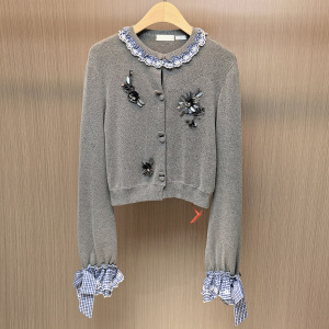 现货深圳南油货源2025秋季新品重工拼接格子针织开衫+半身裙两件