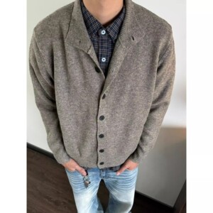 美式复古半高领针织开衫毛衣男款秋冬季新款潮牌宽松百搭休闲外套