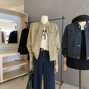 WGWE7283立领做旧美式复古短款牛仔外套女正肩夹克上衣短外套