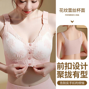 跨境款厂家现货直发无痕肩带款固定杯前纽扣大码薄款无钢圈文胸罩