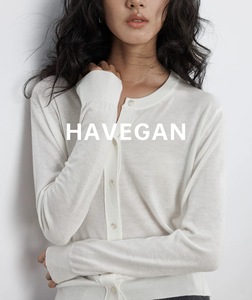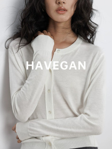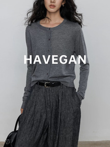 与间HAVEGAN/秋季圆领长袖针织开衫女薄款外穿宽松慵懒老钱风上衣