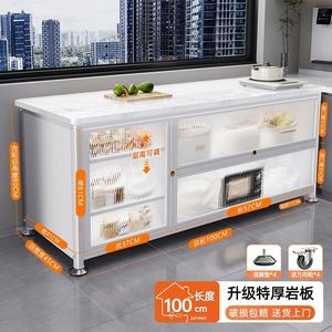 雪山石岩板厨房置物架落地多层多功能微波炉收纳餐边组合储物橱柜